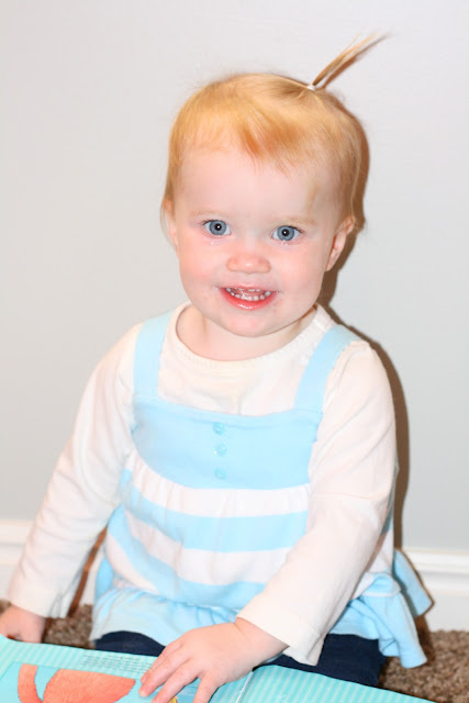 She is quite stubborn and doesn't give up without a fight. She has started to throw tantrums here and there, but I have yet to be discouraged by them; her mad face is just too cute (I'm sure the first in-Walmart tantrum will change my mind on this issue)!